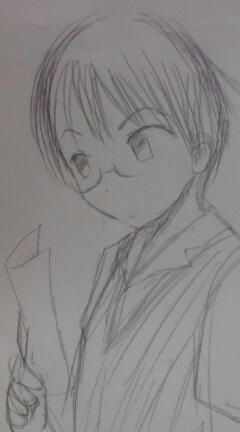 メガネ(黒ぶち)で